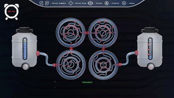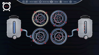The tanks are disconnected and water is wasting, the goal is to connect the pipes to make the water flow into the reserve.